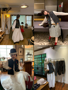 le rouge周美美 秋冬密码100仿羊毛刺绣深灰色百搭叠穿马甲
