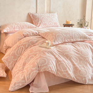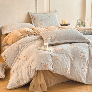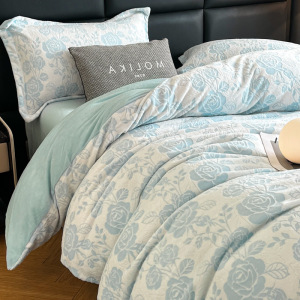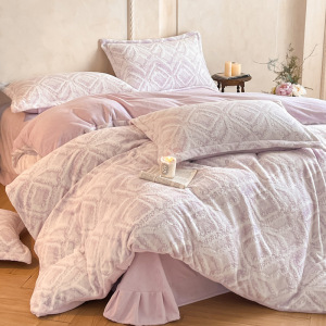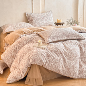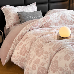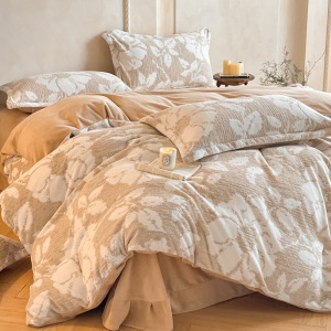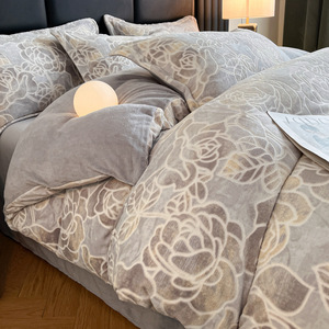 加厚雕花牛奶绒四件套秋冬高克重保暖三件套家用被套床单床上用品