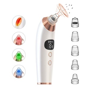 真空吸附、深层清洁毛孔垃圾、不伤肤、冷敷热敷功能、三色美颜灯美颜嫩肤、5档吸力调节、配备5个吸头