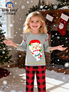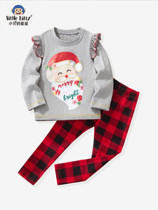 跨境秋冬圣诞节童装长袖长裤套装卡通圣诞老人印花圆领两件套现货