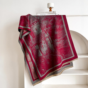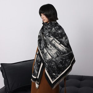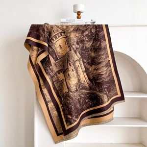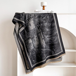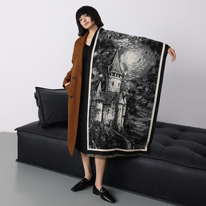复古秋冬款古朴城堡提花仿羊绒保暖围巾女时尚典雅空调披肩中长