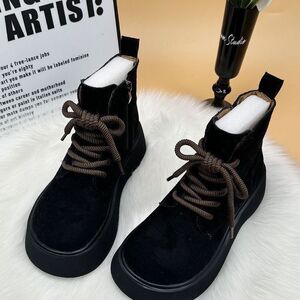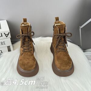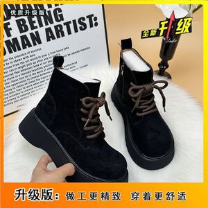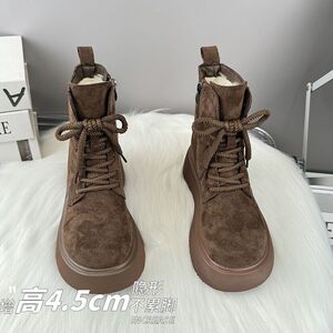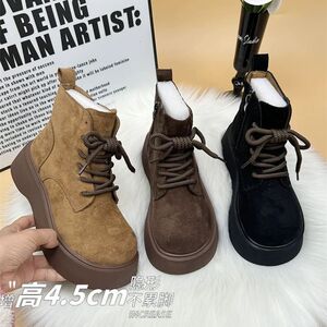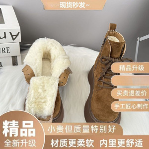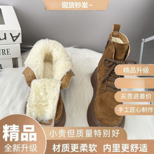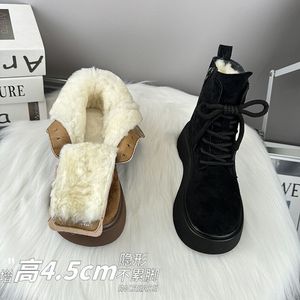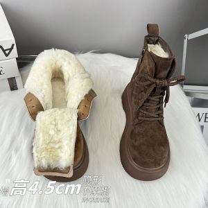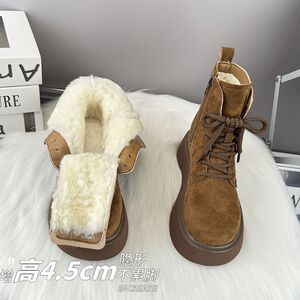 爆款厚底马丁靴女2025冬季新款棉鞋增高加绒保暖翻毛皮羊毛雪地靴