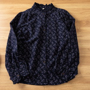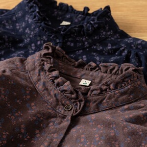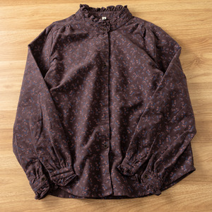 文艺复古碎花木耳领长袖衬衫女春秋季新款田园风宽松休闲上衣衬衣