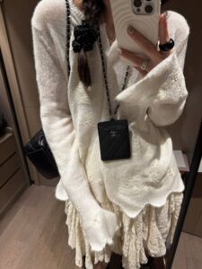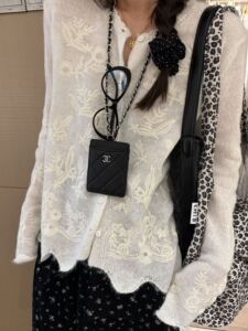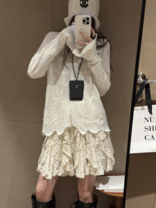 糯糯的法式重工别致绣花喇叭袖V领针织衫25早秋新款刺绣开衫外套