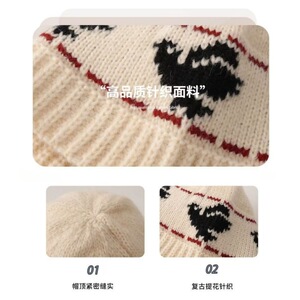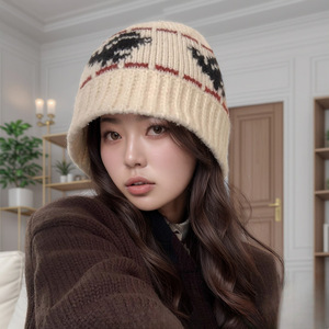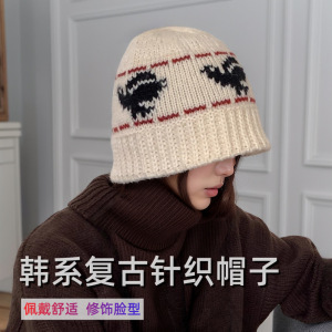 秋冬复古针织帽子女韩系百搭显脸小盆帽保暖毛线水桶帽防寒护耳帽