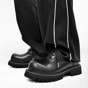 德比鞋男英伦风新款厚底圆头大头鞋黑色增高工装鞋男士休闲皮鞋