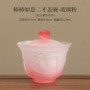 柿柿如意二才盖碗-琉璃粉