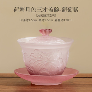 荷塘月色三才盖碗-葡萄紫