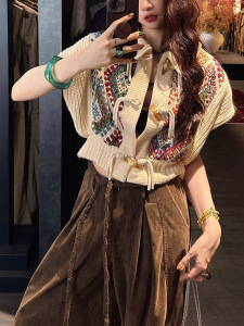 【格桑花】粗针罗纹纱提花民族针织开衫