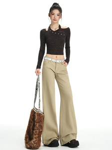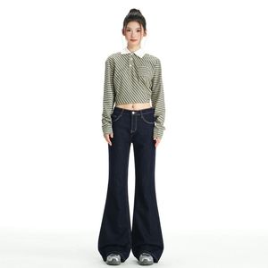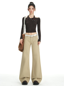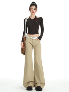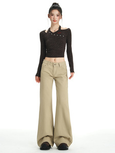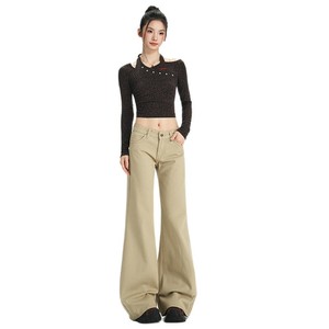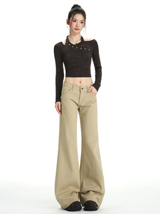 卡其色微喇不贴腿牛仔裤女秋冬美式复古低腰窄版显瘦休闲女款裤子