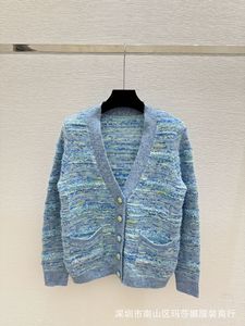 法式南油2025新款钉珠彩色提花V领单排扣针织开衫长袖名媛气质