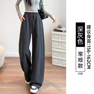 弯刀香蕉阔腿裤女秋季2025新款垂感高腰休闲窄版宽松直筒运动卫裤