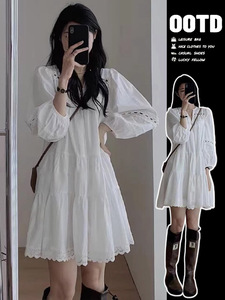 法式白色衬衫连衣裙女2025新款秋季小个子巨好看新疆云南旅游穿搭