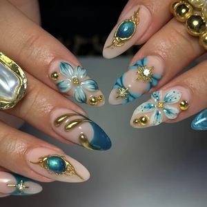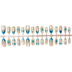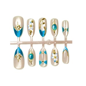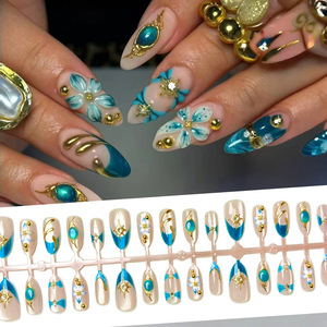 高品质蒂芙尼蓝鎏金法式穿戴甲欧美热销跨境美甲贴片批发百搭辣妹