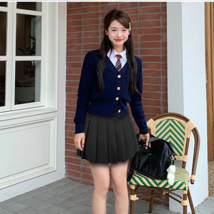 学院风短款红色针织开衫毛衣外套女秋冬季甜美高级复古感慵懒上衣