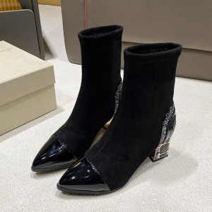 靴子女2025秋冬新款粗跟短靴尖头水钻拉链简约休闲女靴女鞋时装靴