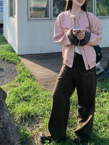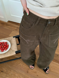 im向 Bella出街’设计感前刺绣贴袋宽松复古牛仔裤直筒裤女秋新款