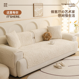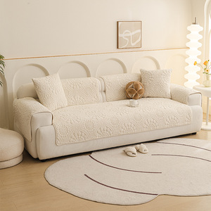 跨境秋冬季新款奶油风加厚毛绒沙发垫防滑沙发套罩现代简约风盖布