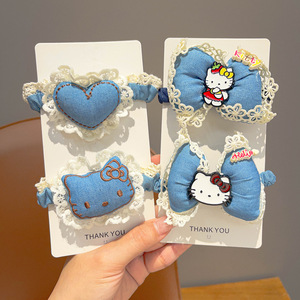 头绳女儿童花边蝴蝶结发圈卡通kt猫女童可爱发圈小肠圈发绳皮筋