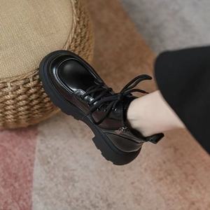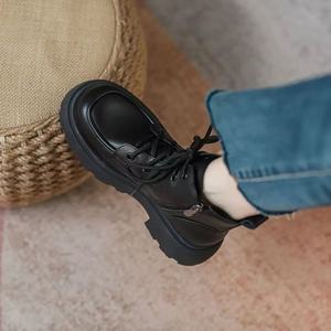 高跟百搭厚底马丁靴女2025秋新款黑色小皮鞋增高系带英伦风短靴