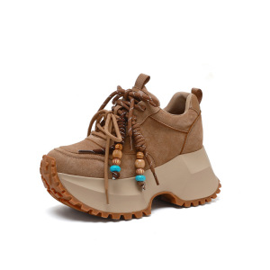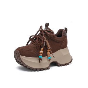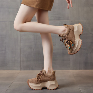 时尚增高老爹鞋女2025秋冬新款真皮厚底牛反绒系带运动百搭休闲鞋