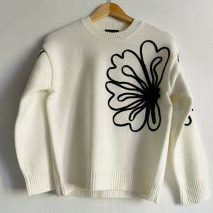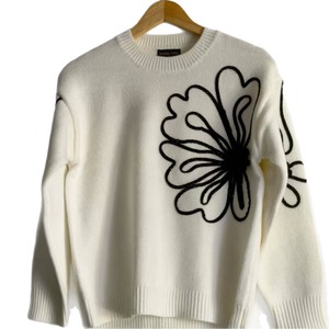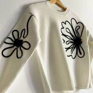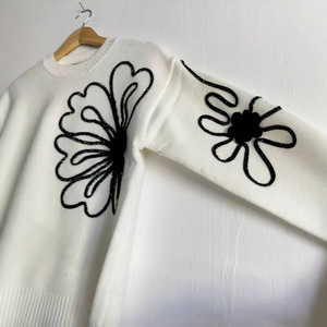 女士秋冬上衣跨境欧美女装简约刺绣花朵半高领长袖套头毛衣