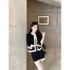 昕可达「Di*r小千金」厚实套装星星扣七分袖针织开衫+短裤女