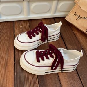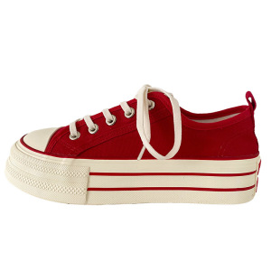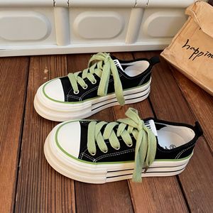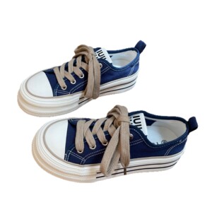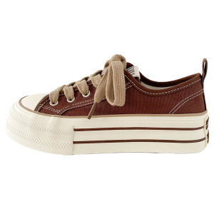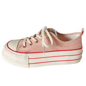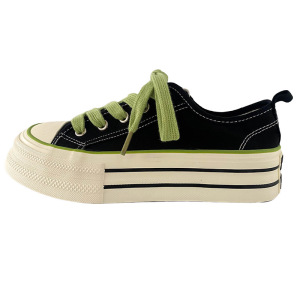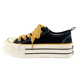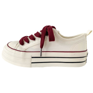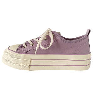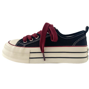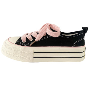 H1323 松紧带/两幅鞋带 爆款厚底帆布鞋女圆头小白鞋百搭薄款板鞋