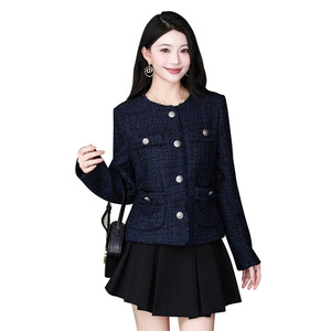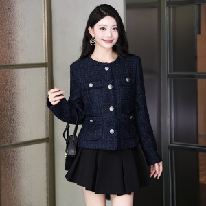 蓝色小香风外套女2025秋冬新款减龄女士短款小个子洋气粗花呢上衣