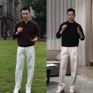 秋季男士时尚百搭潮流简约纯色极简宽松老钱直筒休闲裤