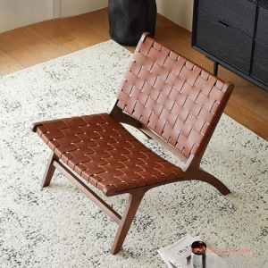 靠背椅编实木单人沙发椅北欧台椅子日式侘寂风小户型靠背懒人椅