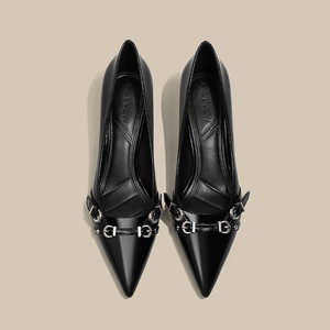 黑色绝美高跟鞋女2025新款不累脚法式气质尖头细跟单鞋配裙子