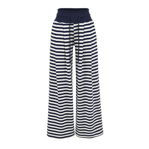 Y2036-25夏季新款 欧美风抽绳宽松阔腿垂感慵懒风条纹长裤休闲裤