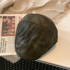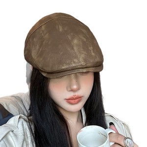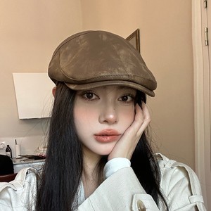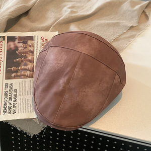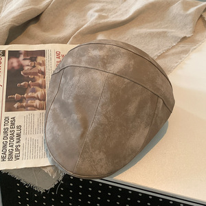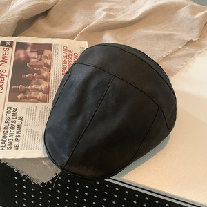 美式复古街头辣妹PU贝雷帽女秋季薄款纯色休闲百搭显脸小前进帽子