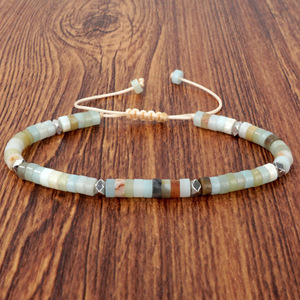 跨境热销女士隔片串珠手串波西米亚绿松石帝王石扁珠编织情侣手链
