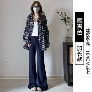 藏青色微喇运动裤女秋季2025新款高腰显瘦休闲卫裤美式垂感喇叭裤