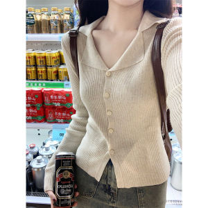 法式polo领针织衫女2025新款毛衣打底衫内搭长袖上衣早秋韩系穿搭