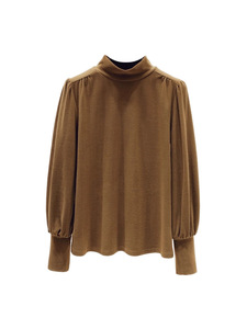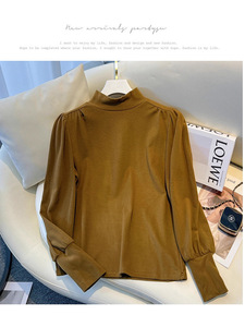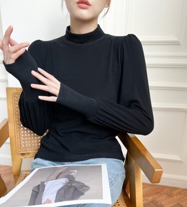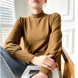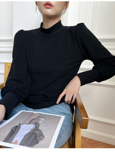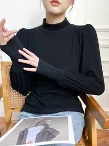 哥家商场同款女装2025秋季德绒半高领灯笼袖t恤内搭打底衫上衣