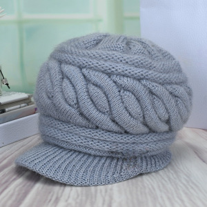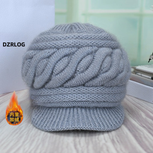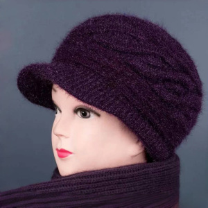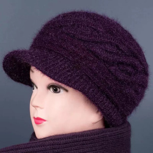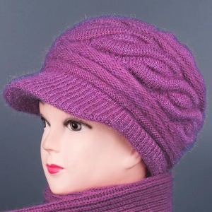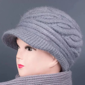 中老年人冬天加绒帽子围巾套装保暖防寒妈妈针织毛线帽子鸭舌帽女