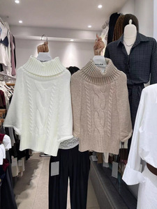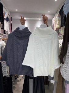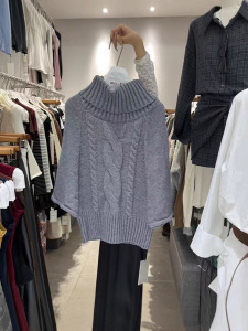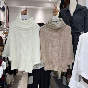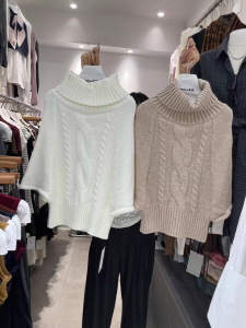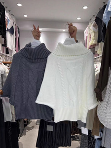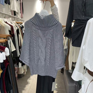 复古套头麻花高领斗篷甜美毛衣大摆中袖针织衫2025秋季新款上衣潮
