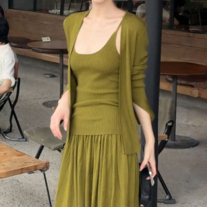 【两件套】时尚薄荷曼波减龄外穿显白开衫叠穿背心女99504+99505