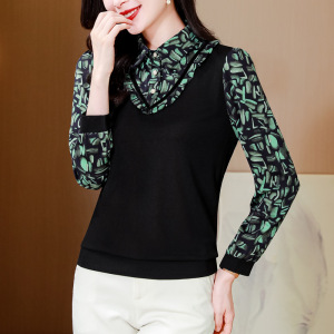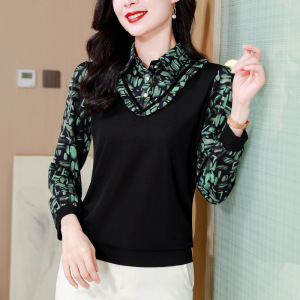 针织拼色长袖T恤女2025秋季新款时尚假两件妈妈装洋气小衫上衣潮