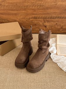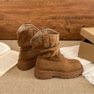 羊皮版~厚底马丁靴女款2025新款秋季复古骑士短靴女美拉德堆堆靴