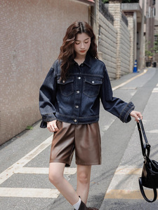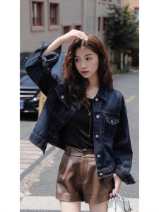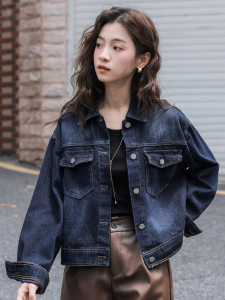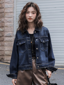 哥家商场同款女装2025秋季韩系复古深蓝休闲牛仔外套港风短款上衣