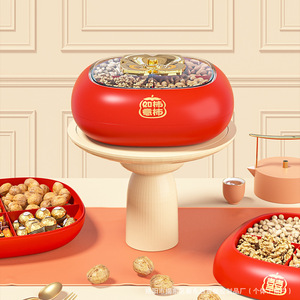 新年礼品果盘轻奢仿皮果盘家用多层零食盘分格带盖坚果客厅糖果盒