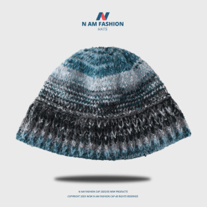 韩版秋冬彩色渐变针织渔夫帽日系街头休闲百搭显脸小毛线盆帽潮