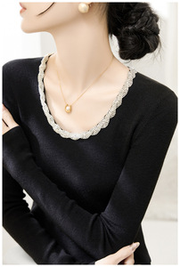 哥家商场同款女装2025秋季重工镶钻链羊毛打底领长袖修身针织衫