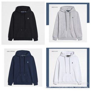 跨境拉夫劳伦LR刺绣小马男卫衣春秋款女连帽卫衣休闲宽松纯色运动