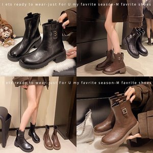 真皮厚底短靴厚底增高2025秋冬切尔西马丁靴女鞋轻便防滑显瘦靴子