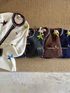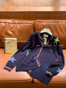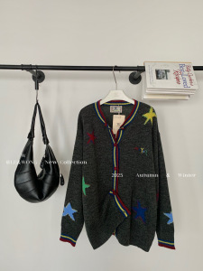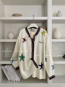 W家 软糯星星撞色针织开衫女2025秋季新款韩系百搭毛衣慵懒外套潮